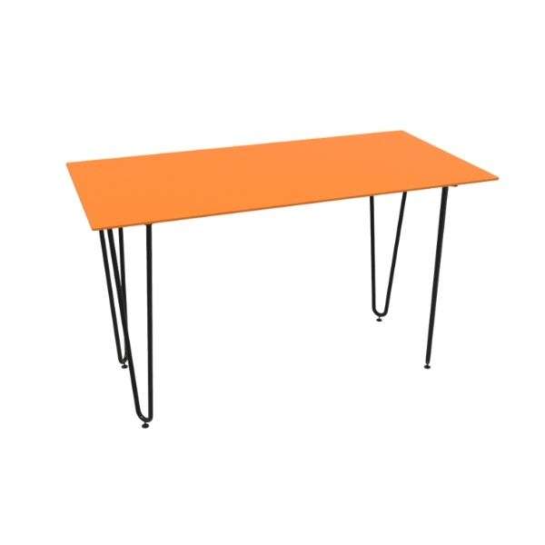 Hairpin leg desk features slender, metal legs with a minimalist design resembling a hairpin shape. Its modern, industrial look adds a stylish touch to any workspace while offering a sleek, open aesthetic.