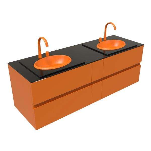 Wall-hung vanity increases the sensation of luxury while maintaining a fresh,stylish look both offers functional solutions for all type of spaces and storage needs.This furniture designed for use with over countertop washbasin. The set can be ompleted with built-in 3 holes basin mixer with 230 mm central spout and click-clack waste creating contemporany and timeless space. Also incorporates four soft-close drawers: the upper drawers offer greater storage capacity